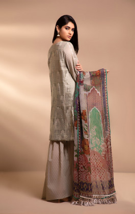 Lawn Printed Shirt With Embroidered Neck | Chiffon Dupatta | Printed Trouser