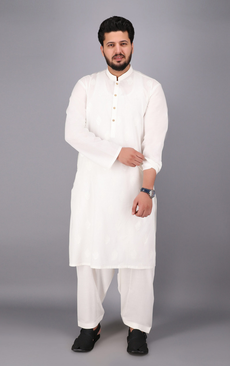 Product Code: OMEKS-1901038 Cotton Embroidered Kurta | Cotton Dyed Shalwar Rs. 3,910