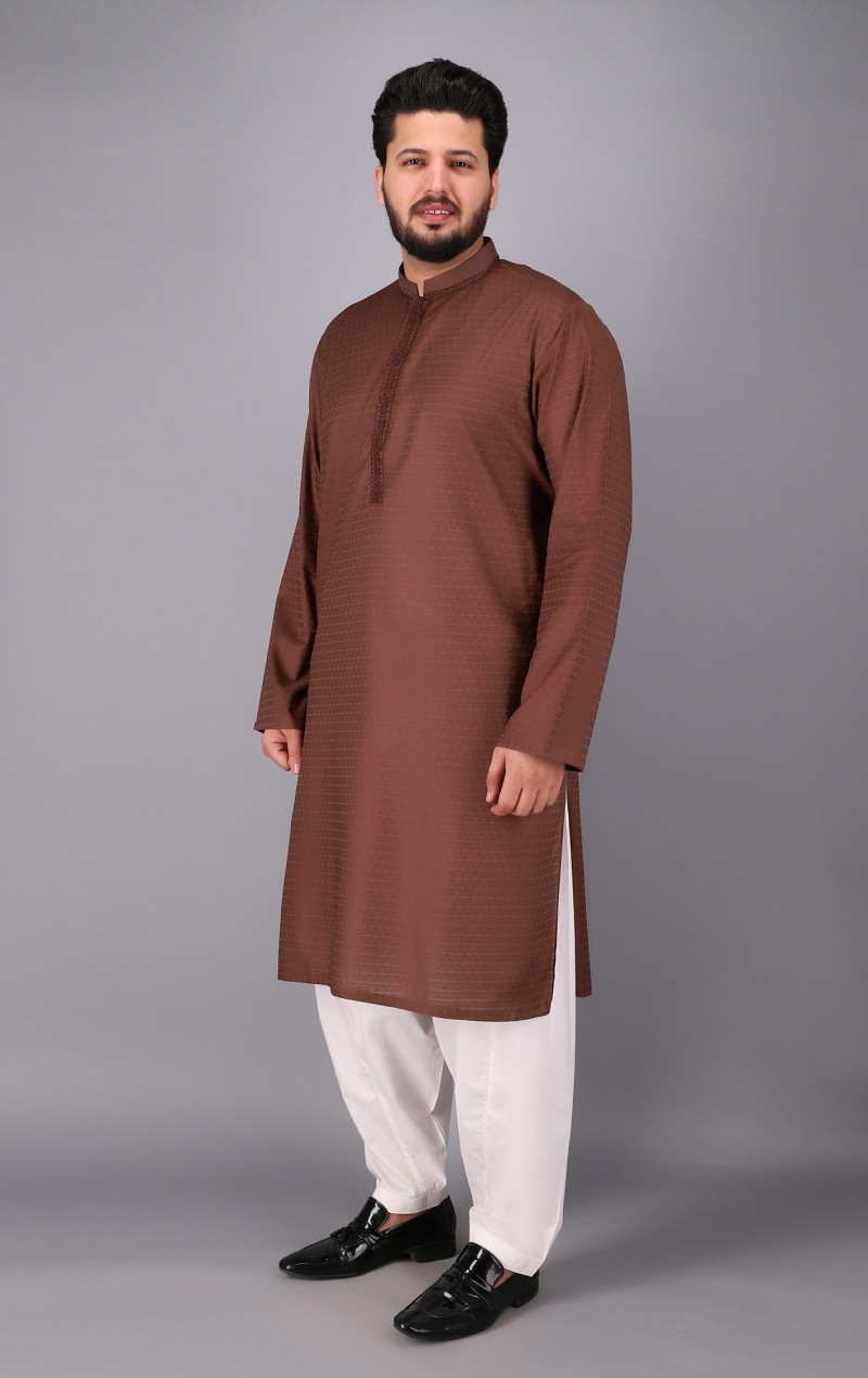 Brown Cotton Dyed Kurta
