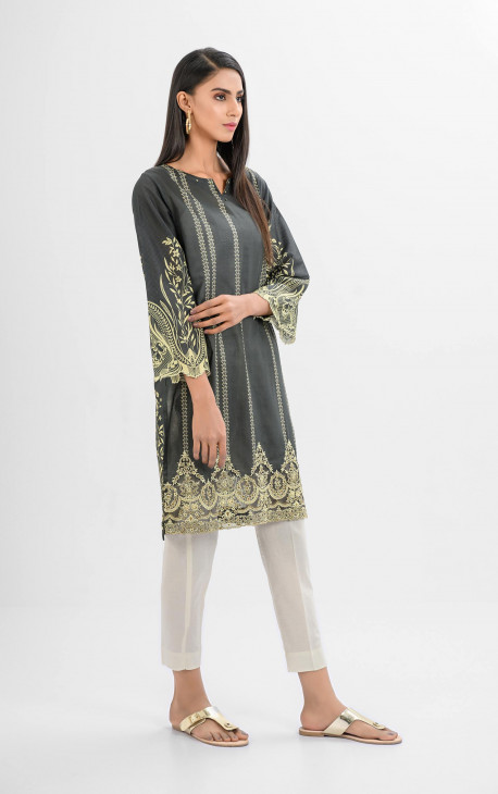 Lawn Printed Kurti With Front Embroidery and Sleeves Embroidery