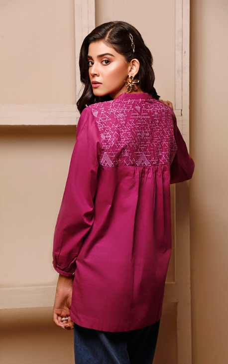 Western top with embroidery on front and long sleeves with cuff
